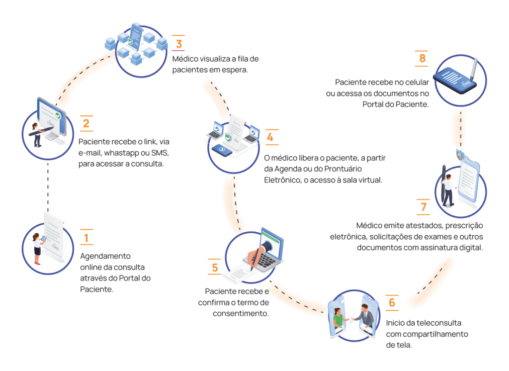 O portal do paciente permite que usuários acessem serviços de telemedicina de forma simples e segura, facilitando o agendamento de consultas e o acompanhamento do atendimento.
